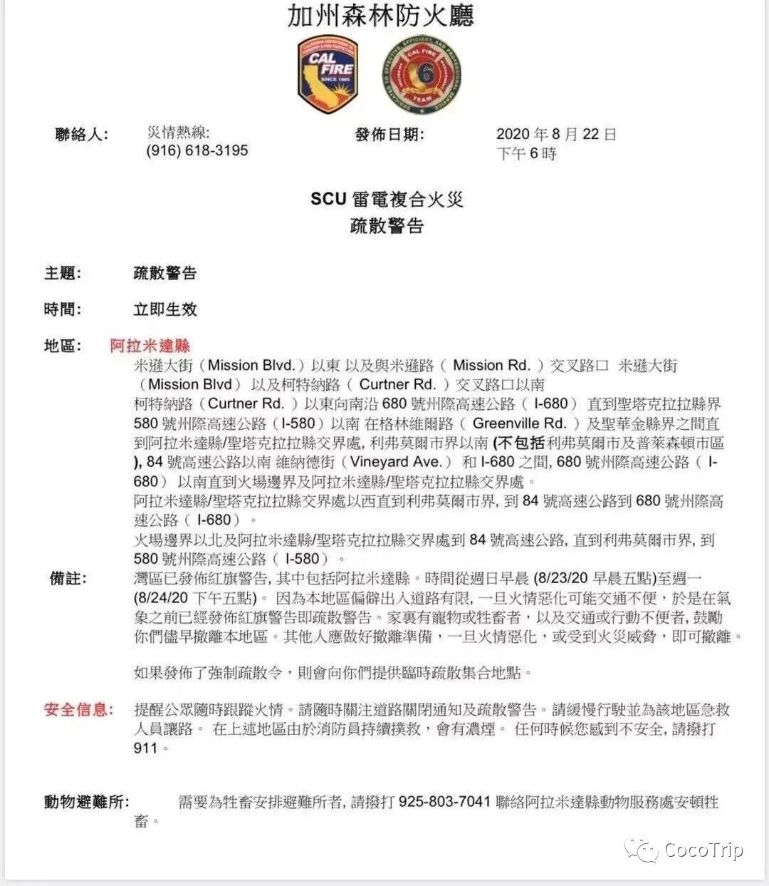 8月22日,收到政府发出的第一条疏散警告: